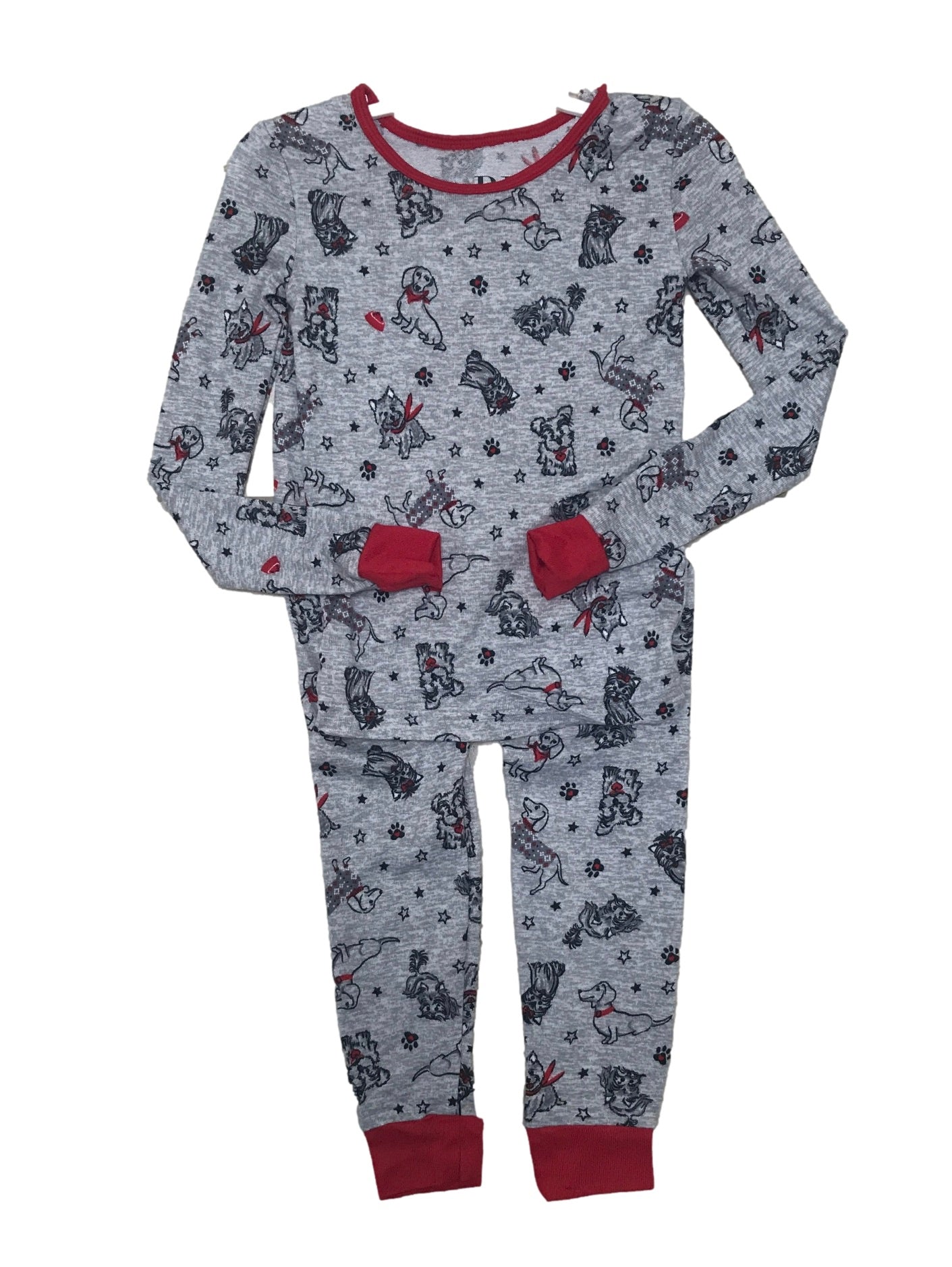 Dachshunds and Yorkies are scattered over these cozy kids jammies. Made of 95% Polyester / 5% Spandex, the jammies are machine washable.