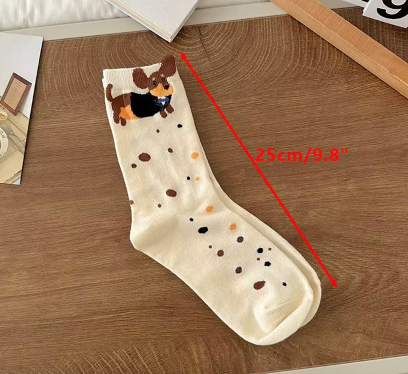 Fun & Formal Sausage Dog adorns happy dots on these crew socks.