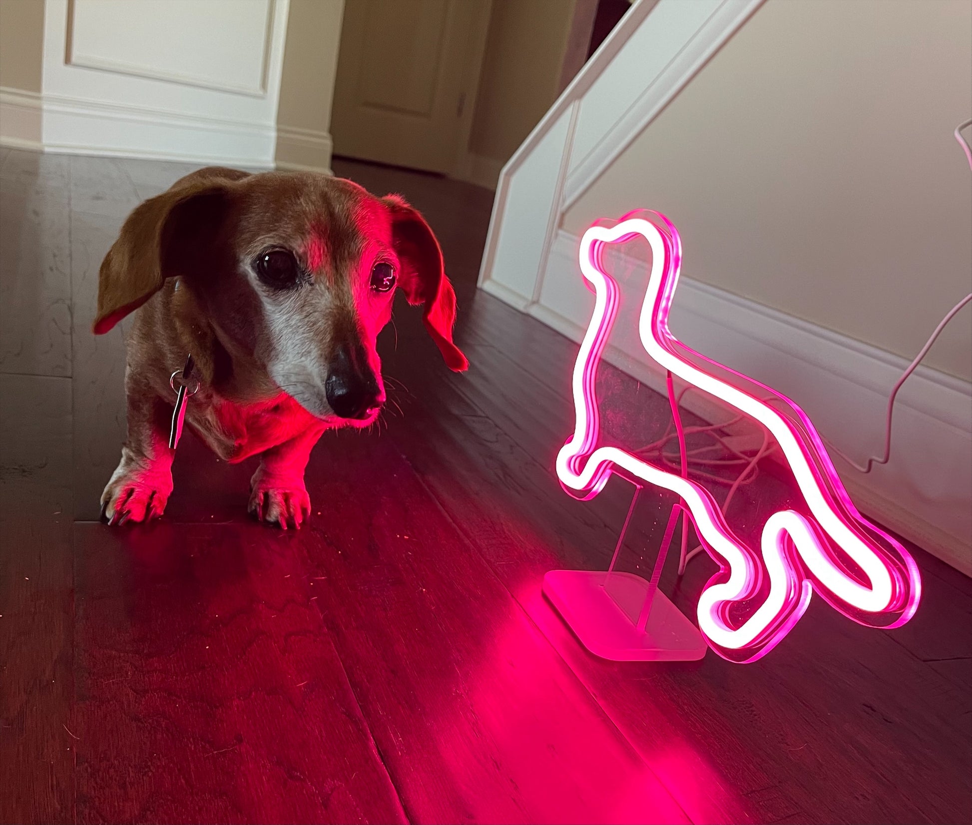 25cmx16cm (9" x 6") LED neon light comes with an acrylic base and a usb cable for charging. Available in a multitude of colors.