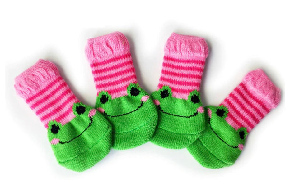 Your pup with either love 'em or hate 'em. Non-skid soles provide traction on even the slipperiest of floors.