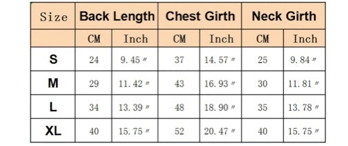 **PLEASE CHECK YOUR DOG'S MEASUREMENTS WITH THE CHART PRIOR TO ORDERING.