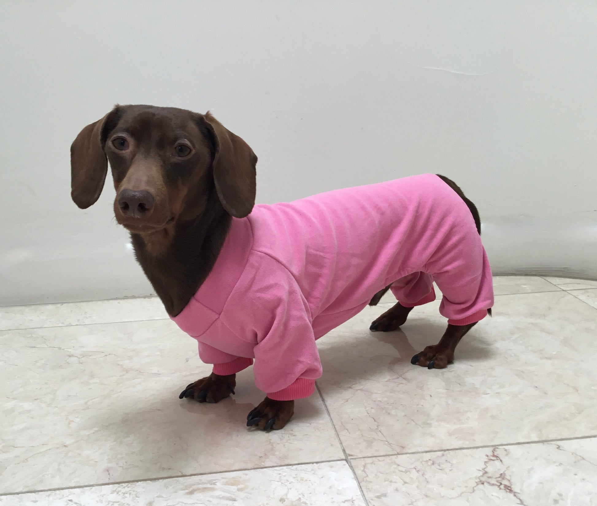 Velvet Jams are made of soft and cozy brushed velvet. Sure to keep your pup warm all winter long! The elastic cuffs help keep the sleeves in place.